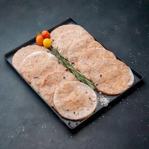 برغر الدجاج من كوزو ميت مصنوع من دجاج طازج بطراوة مميزة، مثالي للشوي أو القلي مع قوام يميل للنعومة.