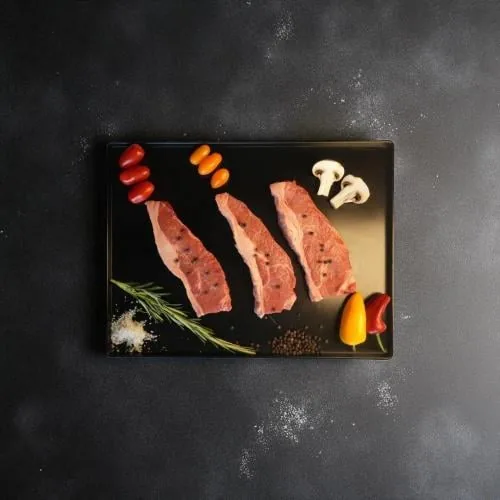 بلاك انجوس ستريبلوين من كوزو ميت يقدم تجربة لحم فاخرة بطعم غني وقوام طري. مناسب للشواء الفاخر والمناسبات الخاصة.