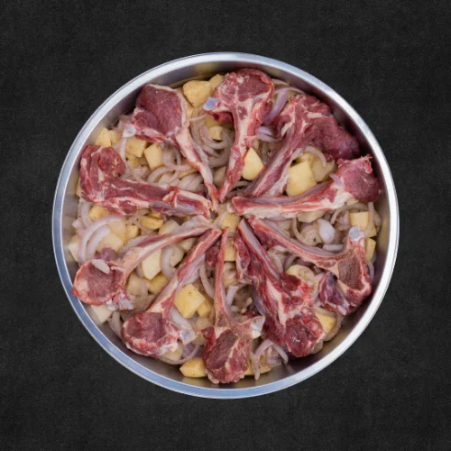 صينية ريش بالخضار من كوزو ميت تقدم قطع ريش طرية مع خضار طازجة وتتبيلة متوازنة، مثالية للخبز المنزلي وتقديمها ساخنة على المائدة.